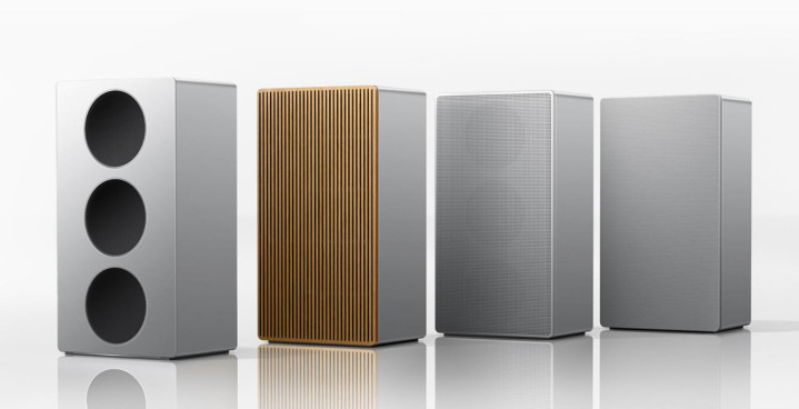 音箱可选配个性磁吸面板,包括木质、织布等面板,适合不同家居风格。另外还可以选配金属落地支架。